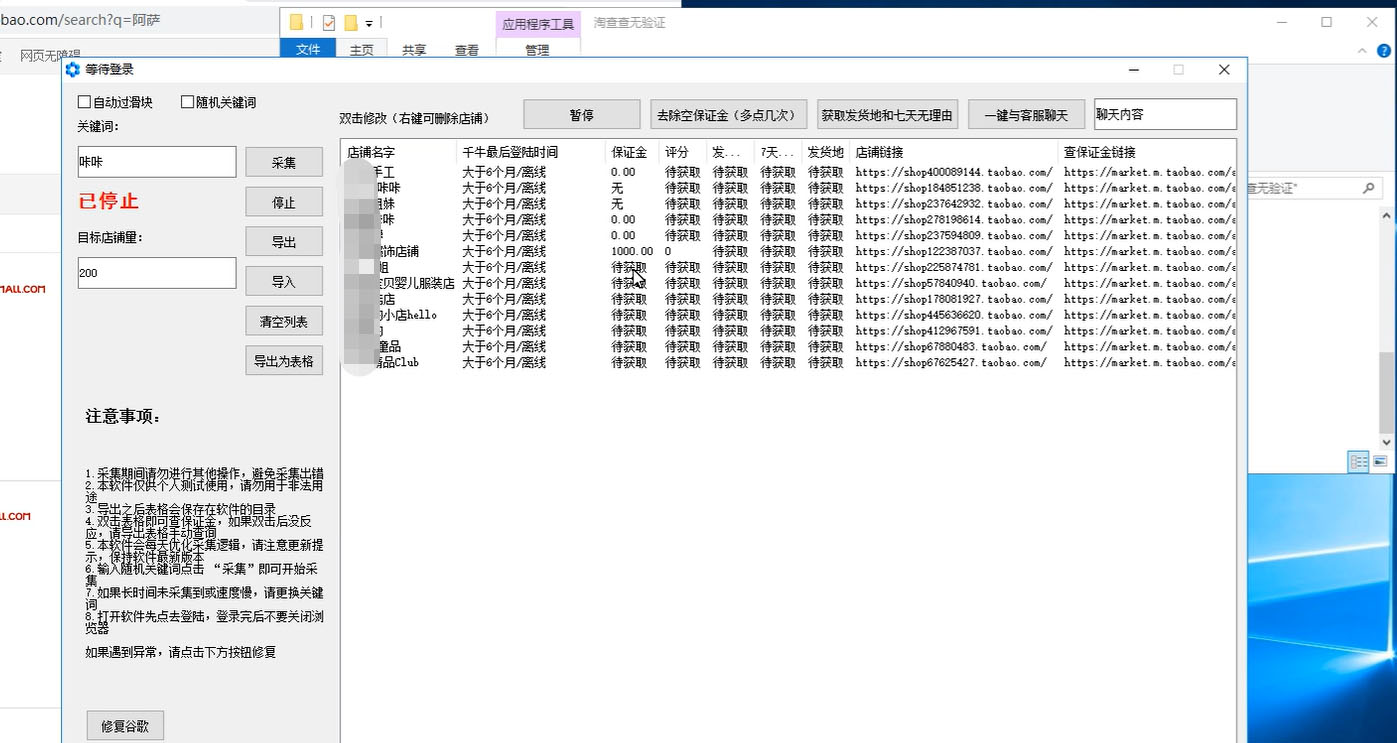 下单需注意:另外,死店采集只是一个名称,这个软件主要是去筛选近期不活跃的以及近期接近0销量的店铺,具体是否是死店,需要你自己进一步的尝试,因为谁也无法百分百承诺去说某一个店铺老板不会上线,就好比我可能知道你这一时半会不会登录咱们平台,那你过了一会可能会登录是一个的道理,望理解,软件仅是辅助筛选。